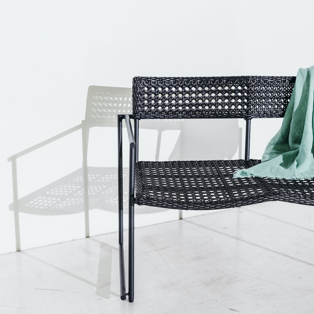 「天気のいい日、リゾート気分を味わえそう!」と嬉しそうに話してくれた南さん。なかなか外出ができない分、少しでも非日常感を楽しめるアイテムが気になるんだそう。座面を黒いアウトラインでぐるりと囲み、周りとの“間”(境界線)を作ったアウトドアファニチャー「MA Series」ベッド。高級感のあるシックな色合いは、多くの人の心を掴むデザイン。背もたれが6段階リクライニングで、自分にフィットする高さに調節可能なので家族での使用も◎。屋外で使用しても変色や腐食しにくい人工ラタンを採用。ベランダに設置すると、雨風に晒されることが多いのでメンテナンスのしやすさは重要です。