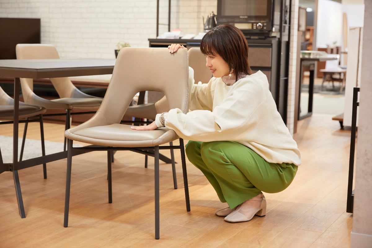 デスクを探していたんですが、デスクに一緒に飾ってあった椅子が、すごく気持ちよかったことに驚きました。デスクやダイニングは特に、長く座っている場所なので、体に負担にならないような、座り心地のいいものだと、きっと違うんだろうなって感じたんです。