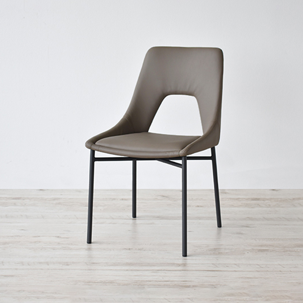 「なんだろう、すごいフィット感がある気がします!」と驚いた坂下さん。ブラックスチールとグレートーンの合成皮革を合わせたモダンテイストのダイニングチェア「レイラ」は、洗練されたダイニングにもぴったり!「黒系のインテリアって、なんか重厚そうなイメージがあったのであまり選んでこなかったんですけど、グレーと合わせたらすごく馴染みますね!我が家もこの組み合わせ試してみたくなりました」
