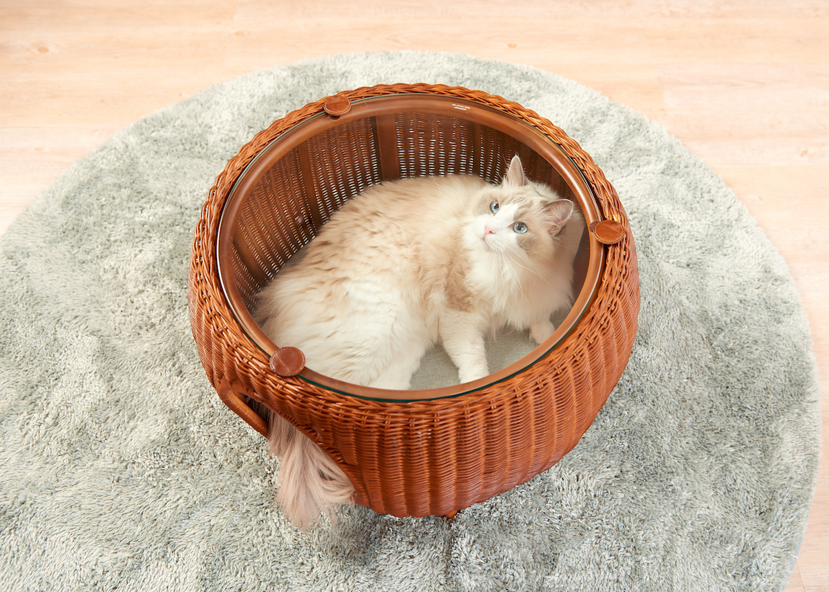カフェテーブルがそのままベッドに、いつも一緒で癒される、ラタン製ベッド。ラタン製のおしゃれなカフェテーブルの中に猫ちゃんが入ってくつろげる。天板は強化ガラスですので、テーブルの上から猫さんのかわいい姿を見ることが可能。インテリアの一部としてお部屋に置いてみたくなるような洗練されたデザイン。上質な天然のラタン(藤)を使い、ひとつひとつ熟練の職人が丁寧に編んで仕上げおり、プレゼントや贈り物にも最適。