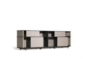 デザイナーのジャン・マリー・マッソーがスピーカーから着想を得てデザインしたキャビネット。ライトカラーとダークカラーの半透明なパネルを組み合わせることで、軽快な印象を与えます。細部までこだわった、デザイナーの遊び心を感じさせます。