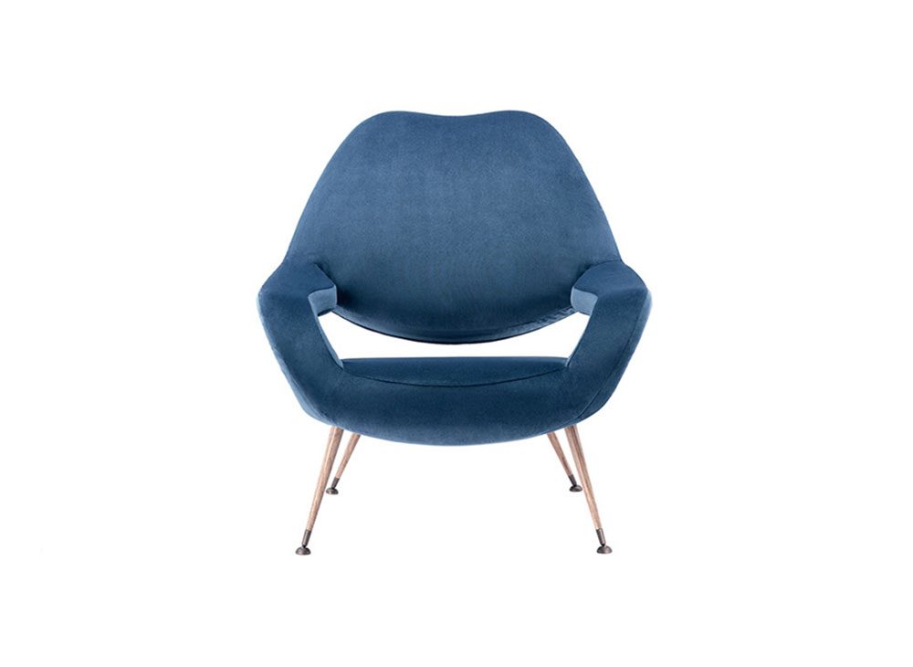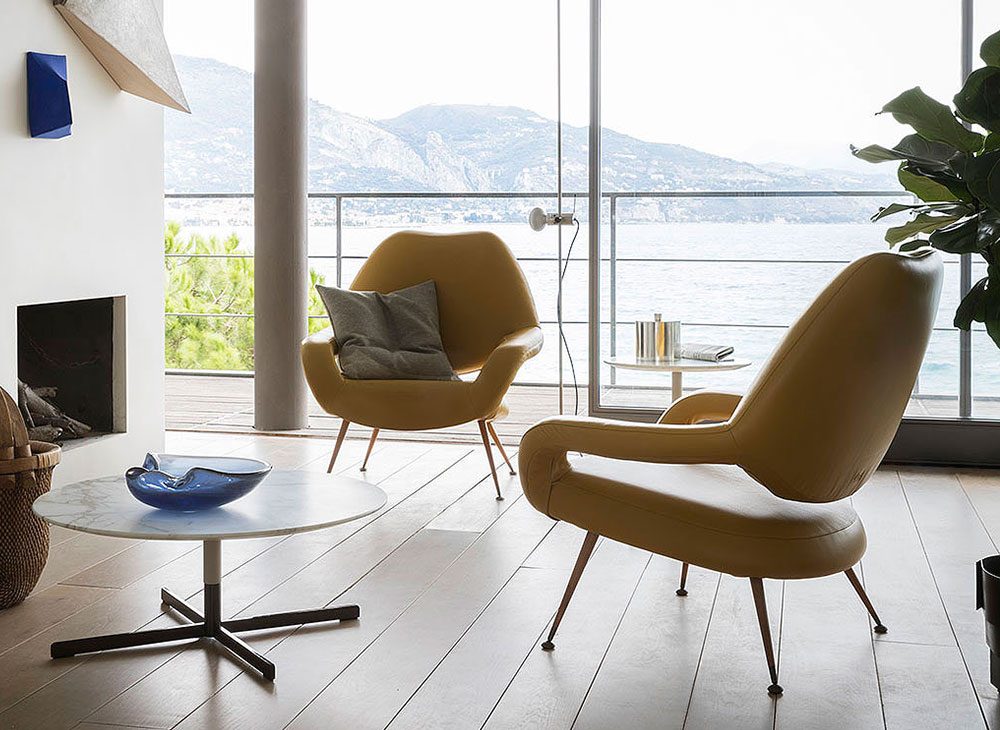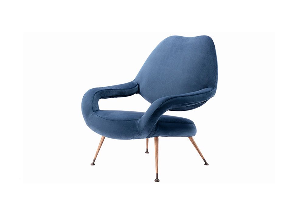 アームチェア「DU 55」はまずフォームの統一感、個性、エレガンスを見る者に与えます。丸みを帯びたボディーと躍動感のある脚が安定感とコンフォートを与えており、リラックスした快い座り心地を提案します。