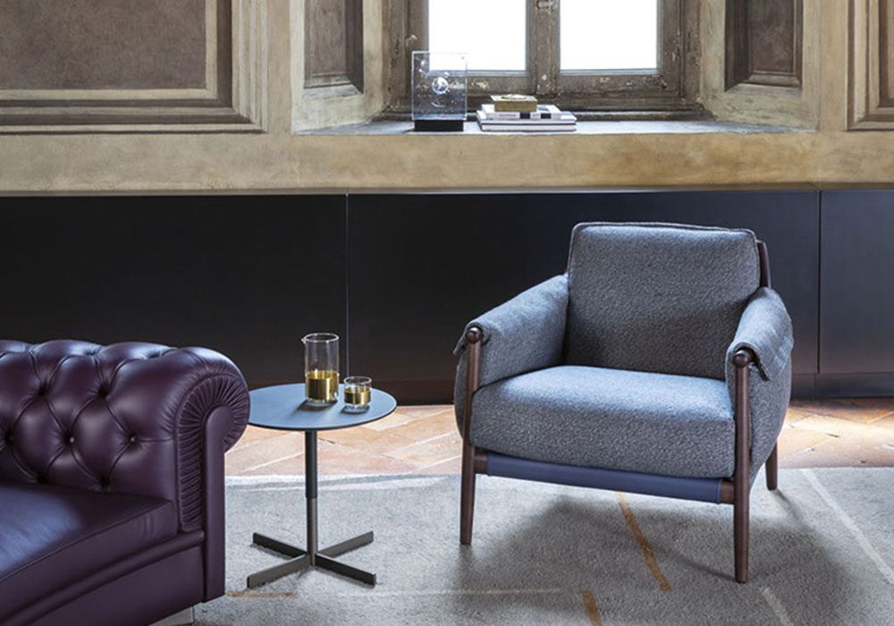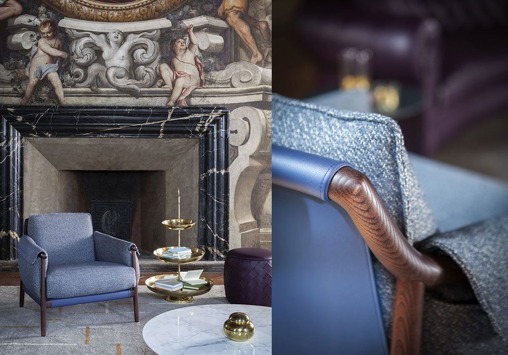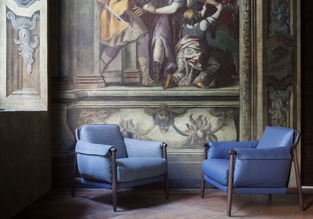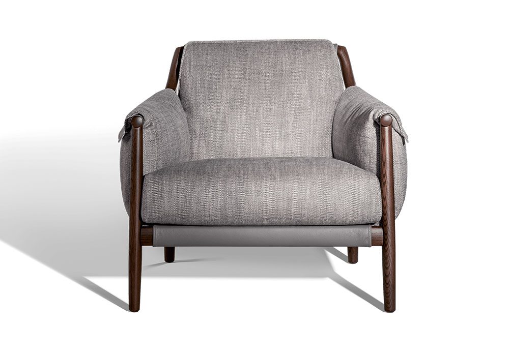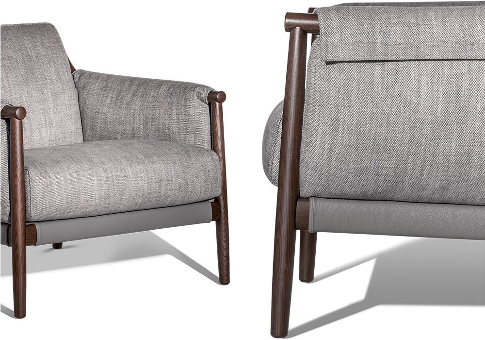 「Times」のシリーズもウッドのフレームにテーラーメイドの張地を着せるという斬新な発想からデザインされ、