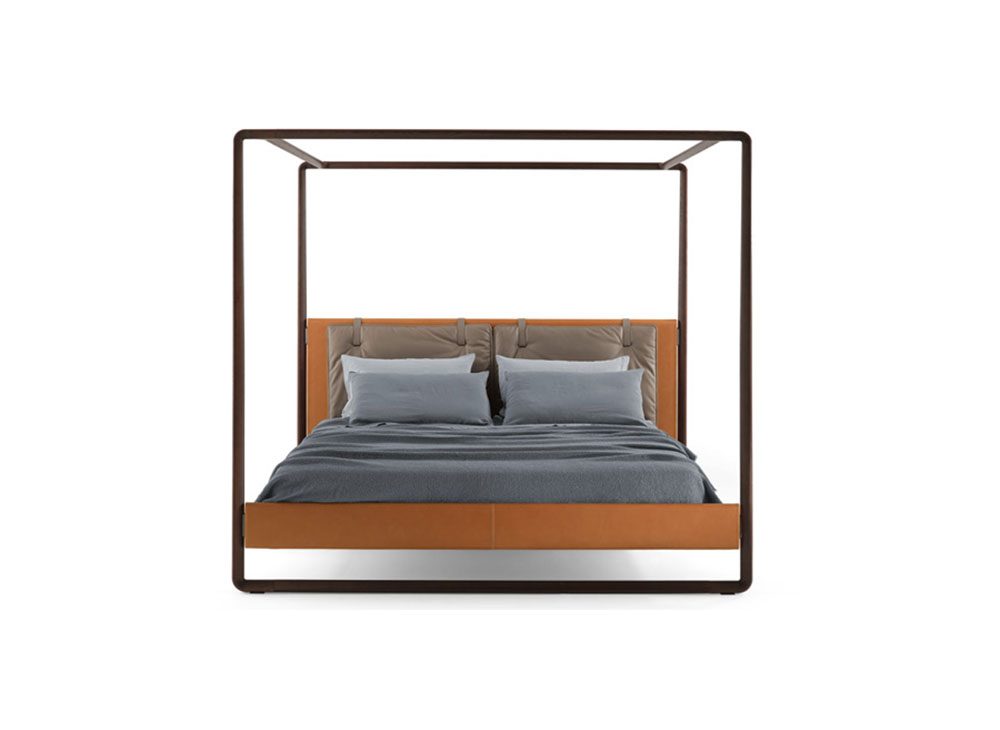 ロベルト・ラッツェローニはクラシックな天蓋つきのベッドフレームを軽やかにアレンジした「Volare」をデザインしました。