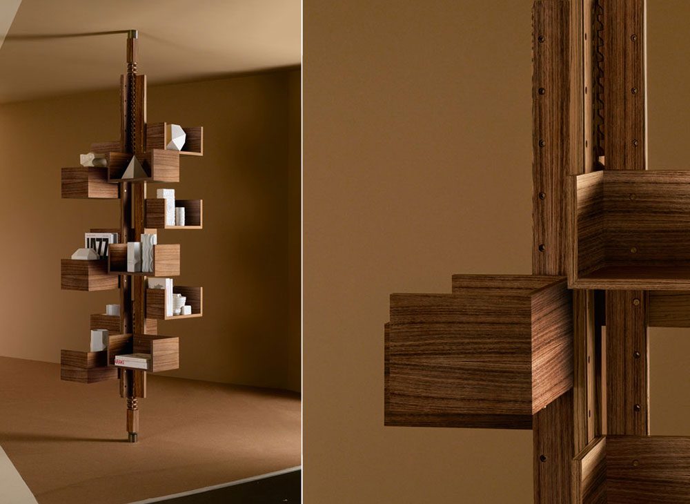 「床から天井まで達する」独立した書棚として「Albero」は、50年代末にジャンフランコ・フラッティーニによってデザインされました。「Albero」は50年代と60年代に流行った床から天井までの高さがある書棚を彷彿とさせるデザインです。
