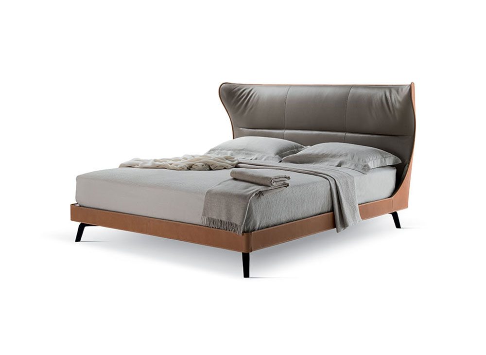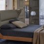 Mamy Blue Bedのヘッドボードの中央部分は無垢のブナとポプラとバーチの合板でできており、側面は成形ポリウレタンフォームで作られています。ウェンジまたはモカ色のアッシュ材を用いた脚部は、ベッドの重厚さとは対照的で、地面から持ち上げて視覚的な影響を軽減します。スプルースブロックボードのベッドフレームとポプラ合板のフットボード付きMDF。張地は外側をSaddle Extraレザーで、内側をレザーにてお選び頂けます。さまざまな素材の組み合わせは、コントラストステッチによってより際立たせられます。