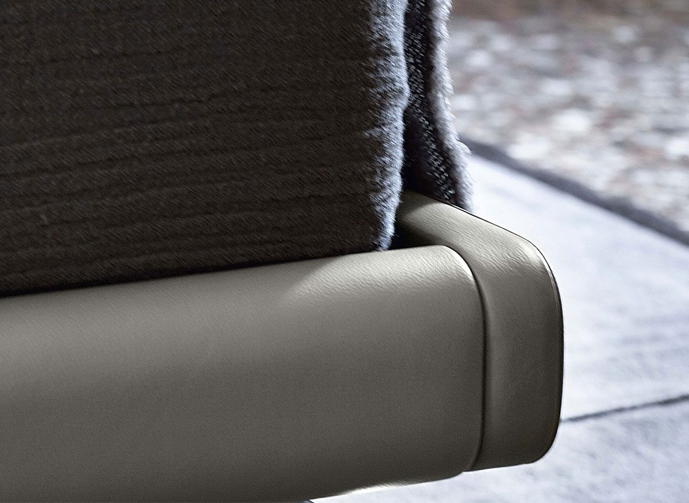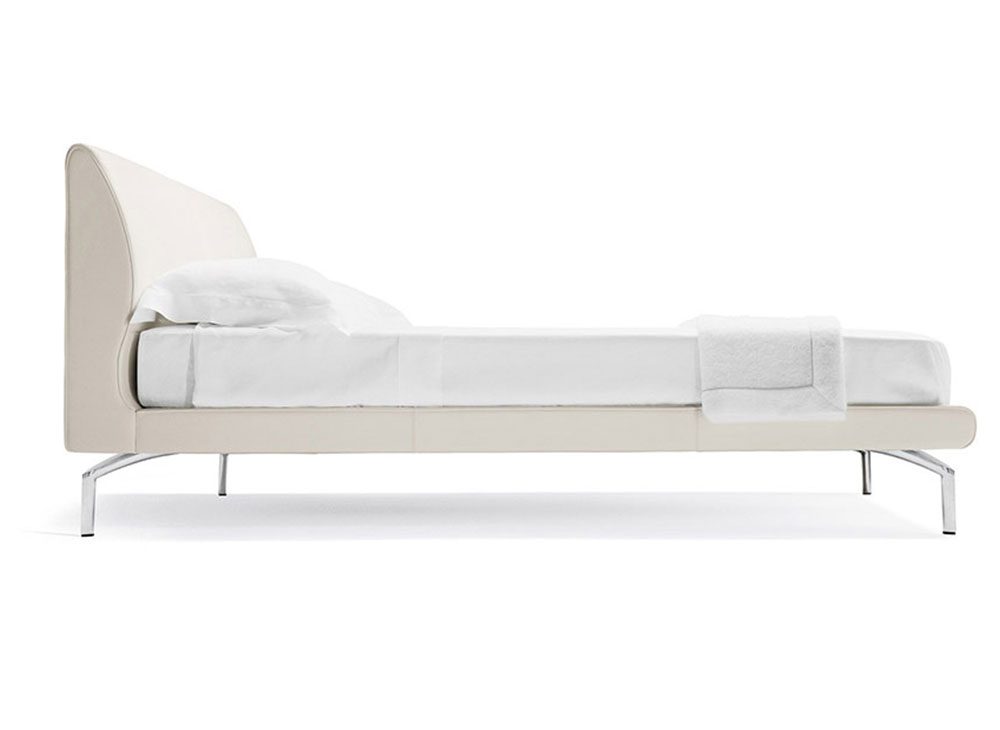 柔らかでエレガントなデザイン。快適な姿勢。ルチアーノ・パガーニ&アンジェロ・ペルヴェルシによってデザインされたベッド「Eosonno」は、マットレスを囲い込むように緩くカーブしたヘッドボードが特徴です。構造を支える金属製の4本の脚がスタイルに現代的なライトな印象を与えています。