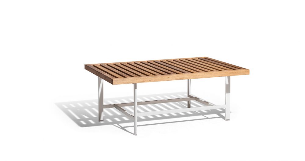 すっきりとしたラインのデザイン。ステンレススチールをベースにチーク心材製の屋外用のローテーブルは、ルドヴィカ+ロベルト・パロンバがデザインしたアウトドア・コレクションSolariaのアイテムです。1段か2段かを選べる天板には正方形と長方形のタイプがあります。天板を割材仕上げにすることで、Solariaのテーマである編み目と透明感を表現しています。2段式のテーブルは、船舶特有のカラボッティーノ風格子仕上げになっていて、それぞれの天板の格子が交差するように重ねられています。庭園、テラス、パティオ、プールサイド、または船舶のデッキのラウンジエリアを整える、Poltrona Frau Boundless Living Outdoor Collections(アウトドア・コレクション)を完成するローテーブルです。