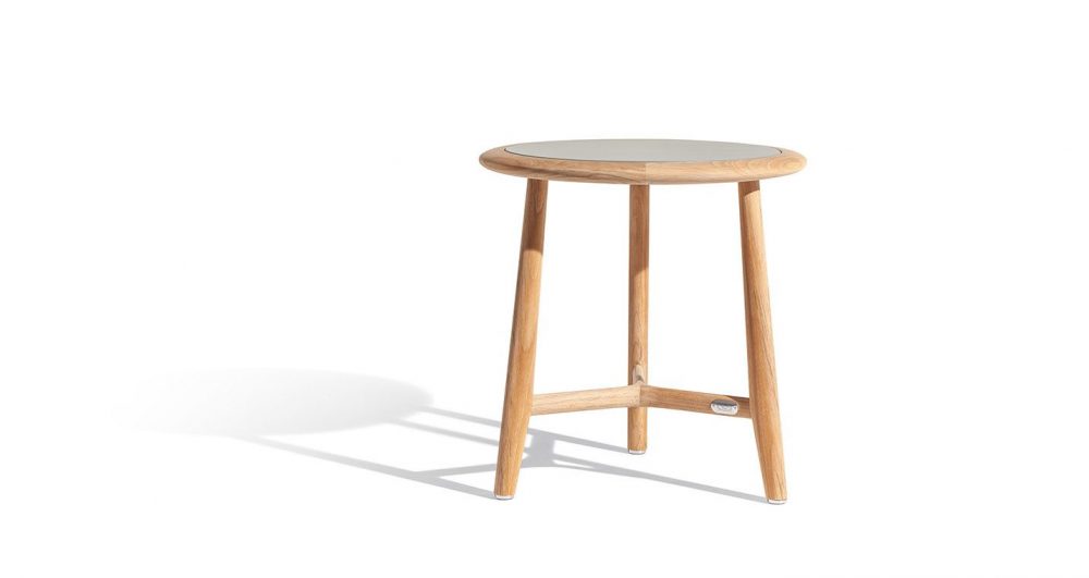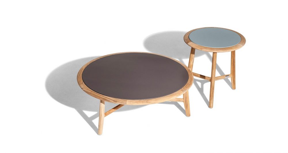 チーク材のナチュラル仕上げで、天板には4色のエナメルの石窯を使用しています。サイズと高さは2種類あります。ロベルト・ラッツェローニがデザインした「The Secret Garden」の一部であり、ポルトローナ・フラウのBoundless Living Outdoor Collectionsのラインナップに含まれる製品です。