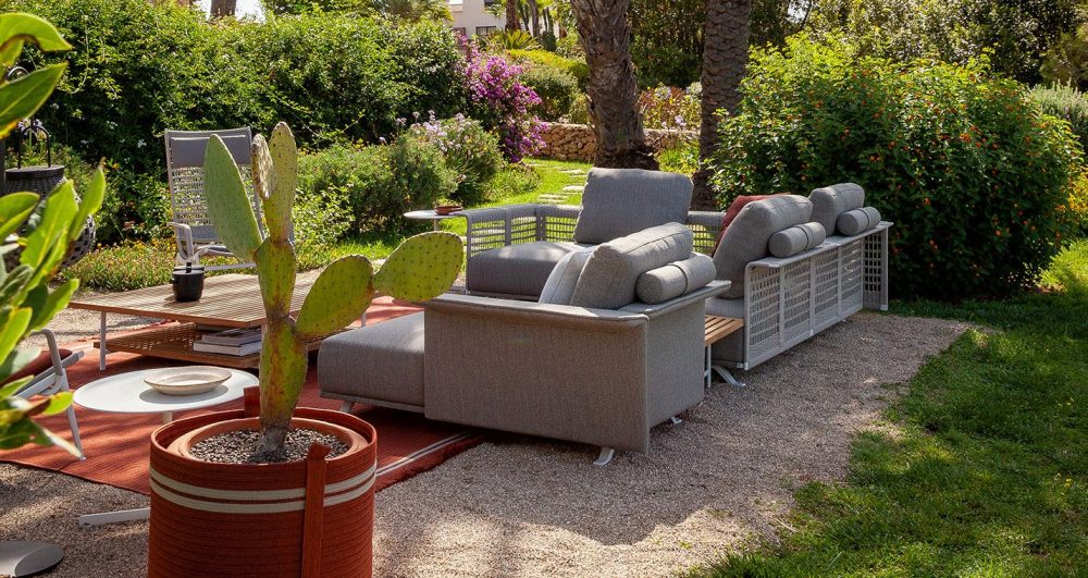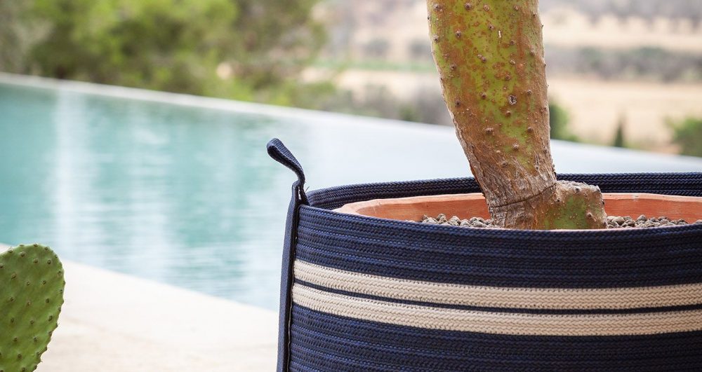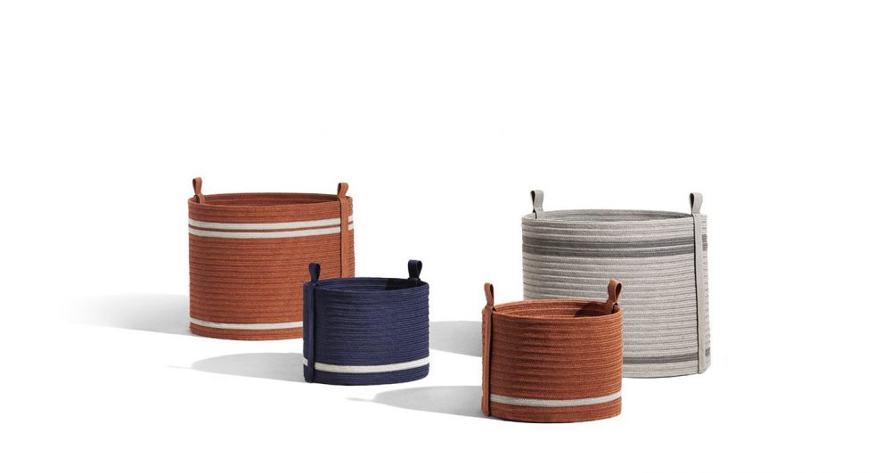 アウトドアスペースに個性を加え、小物やアクサセリーを大切にしまっておくためのカラフルなアクセント。シモーナ・クレマスコリがデザインしたのは、ポリプロピレンの組み紐を縫い合わせた屋外用バスケットSherazade。同名の屋外用ラグと合わせて使え、2つのファブリック製ハンドルのディテールでデザインを完成させています。寸法は2つあり、大バスケットは植木鉢や植物を入れるのに最適で、小バスケットはクッションやブランケットやアクセサリーをしまっておくのにぴったりです。