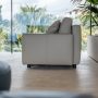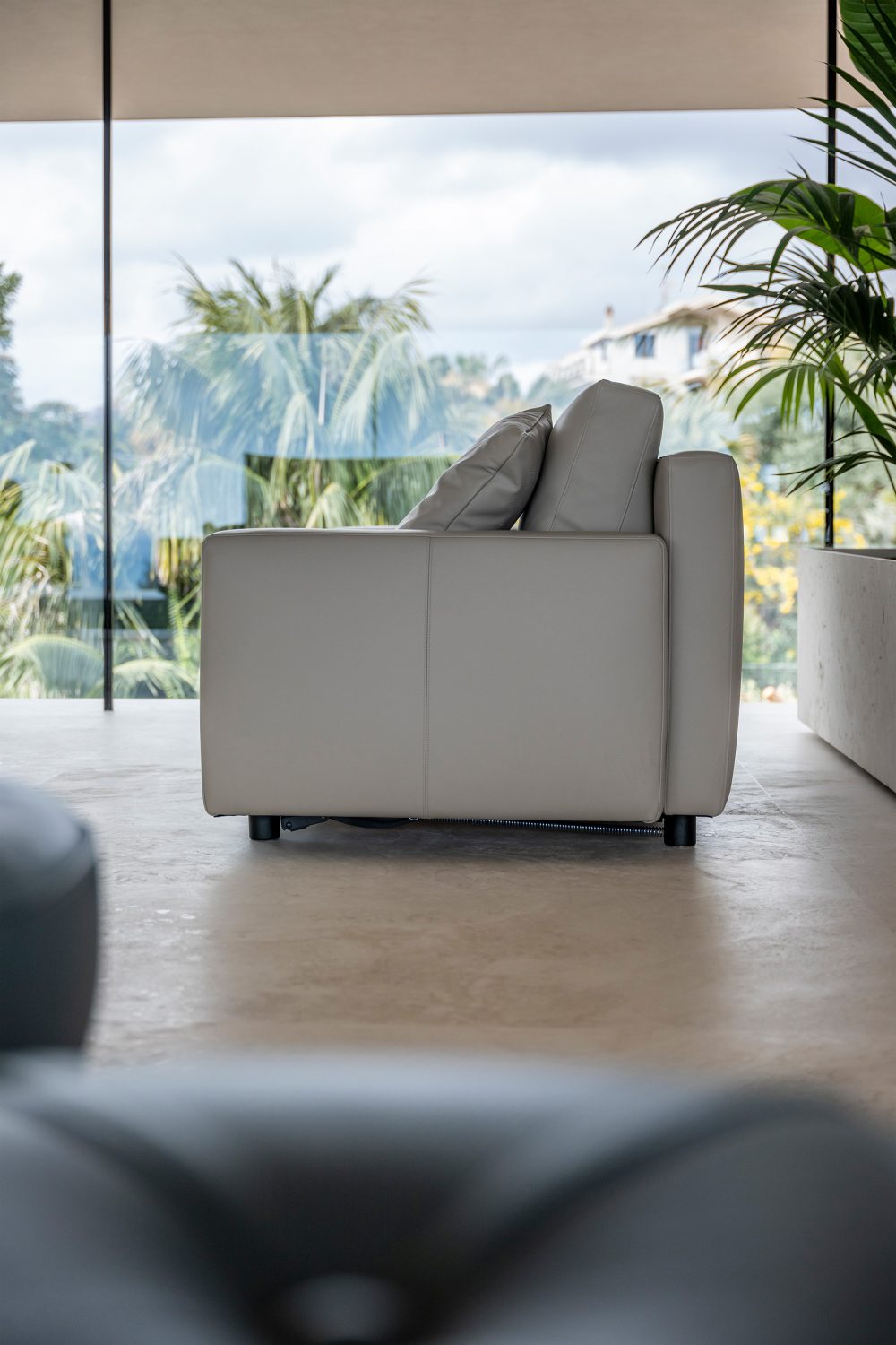 ソファベッドは、シンプルさとミニマルスタイルが魅力の幅広いモジュールソファシステムに組み込まれています。ソファベッド開口部の技術的メカニズムはフレーム内に完全に隠れていて見えませんので、外観的にはラージサイズの2人掛けソファと全く同じです。