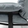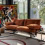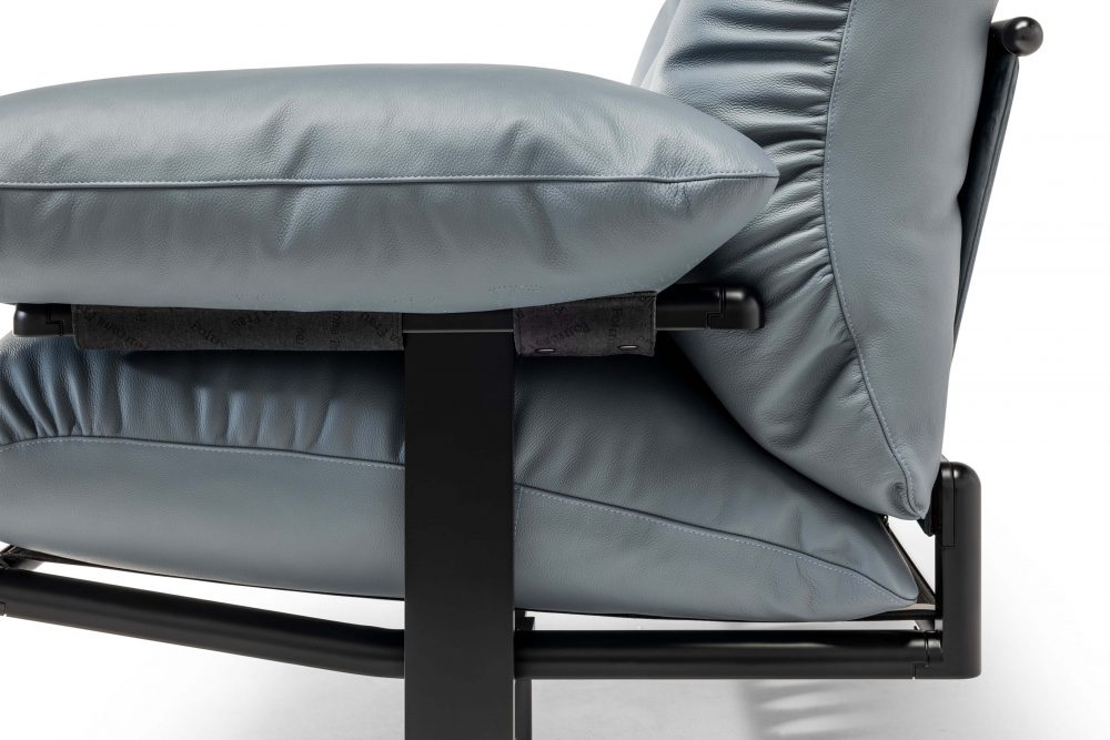 一見シンプルな形状のクッションには、伝統的な椅子張り技術の再現した80年代のデザインを彷彿させる背もたれのボタンなど、豊かなディテールが隠されています。また、シートクッションと背もたれのクッションの接合部はやや先細になっており、2つのパーツが巧く重なり合うよう工夫されています。レザーとファブリックのいずれのカバー材も着脱可能です。パッティングの素材にはグースダウンとポリエステル繊維綿が使用されており、発泡ポリウレタンのインサートが変形を防止し、絶対的な快適性を保証します。
