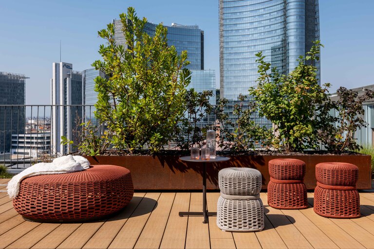 大城健作氏のデザインによる屋内用スツール「Lepli レプリ」から生まれた、Leplìシリーズの屋外用バージョン。