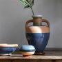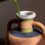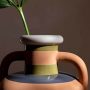 手作業でろくろにかけ彩色した花びんIkiperuの陶器製花びんは、古代エトルリアの装飾的オブジェの形を思い出させます。丸みを帯びた形の花びんIkiperuは水平の帯で構成され、仕上げは彩色し釉薬をかけた陶器と釉薬をかけていない陶器のコンビネーションで、五感に大きなインパクトを与える効果を生み出しています。花びんIkiperuはPelle Frau®のニュアンスカラーに着想を得た2種類のカラーコンビネーションでご用意できます。