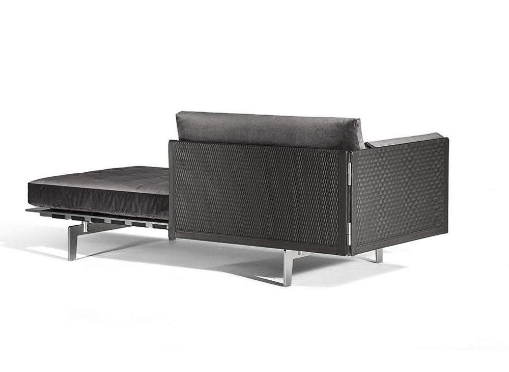 スチールとポリウレタンフォームのパッドで作られた背もたれ、アームレストのパネルは、ルテニウム仕上げの金属製の蝶番で結合されています。