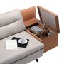 スリムで高いアームレストとローアームレストも精密で複雑な仕上がりで、エレガントなナチュラルオークトレイを収納する小さなコンパートメントも利用できます。