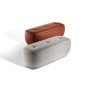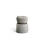 プーフ「Leplì」の構造はカバとポプラの積層板で、ブナ心材とボール紙補強材の仕切りが入っています。収納ボックス付きバージョンでは、両サイドのシェルは金型成型硬質ポリウレタン、 開閉メカニズムの金属パーツとファスナーはスチールとニッケル鍍金ザマックで作られています。カバーはカバの積層板です。ベースはポプラの積層板で、底部にアンチスクラッチブラックカラー塗装されたMDFが使用されています。座面のパッドには発泡ポリウレタン及びポリエステル繊維綿が使用されています(収納ボックス付きモデルはパッド付き構造で発泡ポリウレタン製カバーが付いています)。プーフ「Leplì」のカバー材はPelle Frau®、またはレザーの飾り帯で装飾されたファブリックです。カバー材がレザーのバージョンでは飾り帯はプーフと同じ色です。レザー製バージョンでは座面中央のボタンから伸びる4本のプリーツがプーフの輪郭に特徴を与えています。ファブリック製バージョンではプリーツの代わりにステッチがあしらわれています。