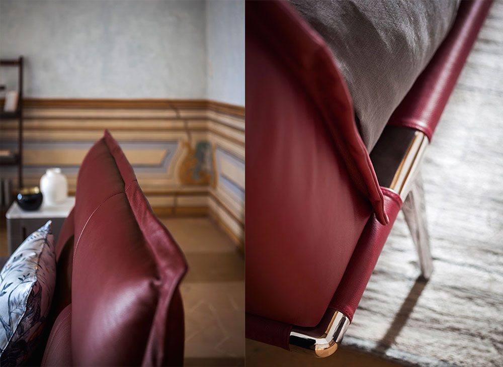 ベースとヘッドボードは、PelleFrau®レザー、またはPelleFrau®レザーと生地との組み合わせもご選択いただけます。