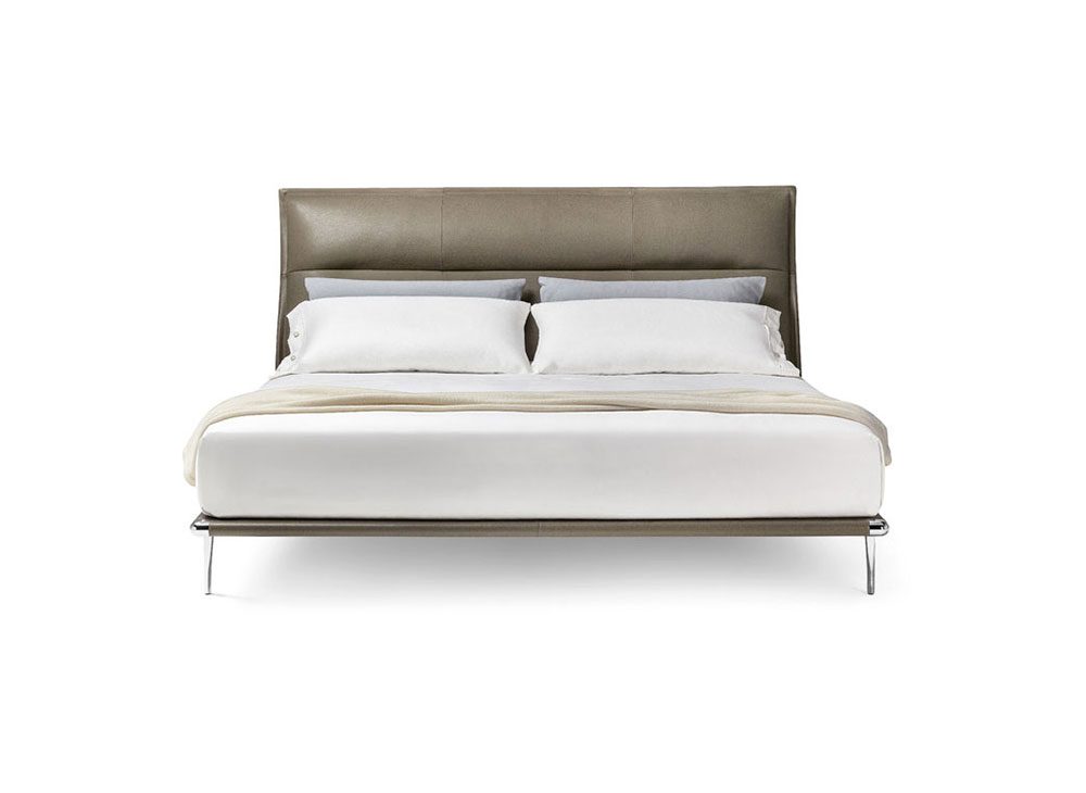 ベッドベースは、ソファのシートのようにレザーで精巧にコーティングされた金属構造です。
