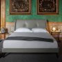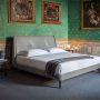「 Suzie Wong」は、50年代のロマンチックコメディー映画とその更に前の時代である18世紀の豪華なアルコーブに着想を得たベッドです。ロベルト・ラッゼローニは軽やかで女性的な、ちょっぴり気取ったベッドをイメージしてデザインしました。「Suzie Wong」ではその原型となっている古典的なボートベッドが、非常にモダンに合理的に解釈されています。真鍮製の先端が付いたピンヒールのように先の尖った革張りの脚が、寝台を床から持ち上げ、軽やかさを際立たせています。ヘッドボードが繊細で上品なステッチによって織り上げられたレザーキルティングで包まれたより洗練されたバージョンは、テーラーメイドと小さな皮革工房の独特な細工を彷彿させます。
