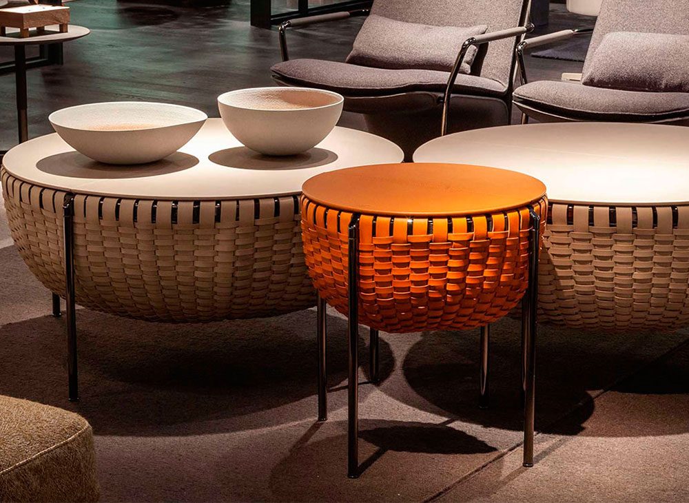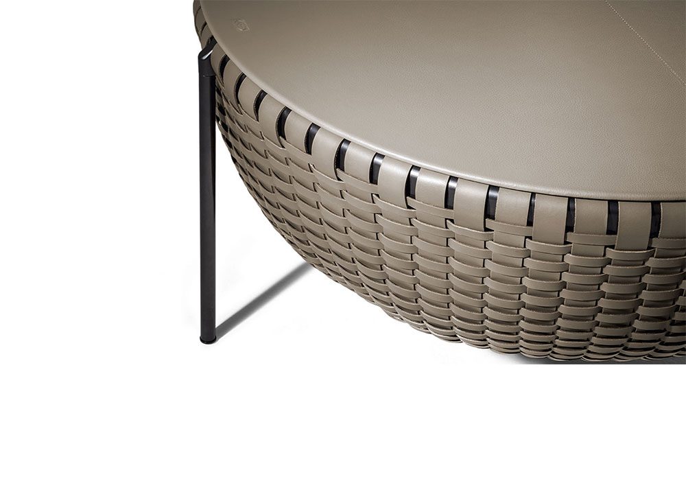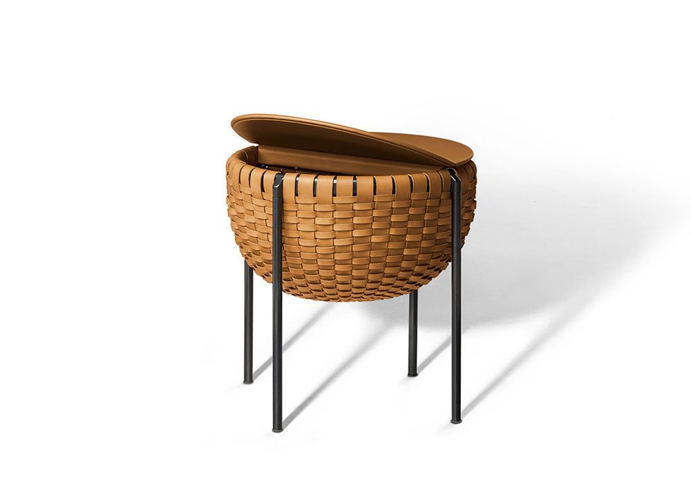 ガム・フラテージは裁縫用のバスケットのような昔ながらのオブジェから着想を得て、モダンで洗練されたコンプリメント「 Cestlavie」をデザインしました。なめし革という素材が喚起する思いと金属構造の軽やかさが一体となって、目にもあでやかで、さまざまな思いをかきたてる、エレガントなアイテムが誕生しました。 繊細な細工によって、レザーの文化と、Poltrona Frauの特徴である高度なクラフトマンシップが際立っています。 Cuoio Saddle Extraの束をひとつひとつ手作業で編んで、ケーシングのあのフォームが作り出されました。収納用バスケット「Cestlavie」はアルミニウム製のパイプ構造に支えられて、まるで線描のように細いスチール製支柱の上に宙づりになっているように見えます。深みのあるなめし革と金属の清潔感が見事な光の動きを創り出しています。