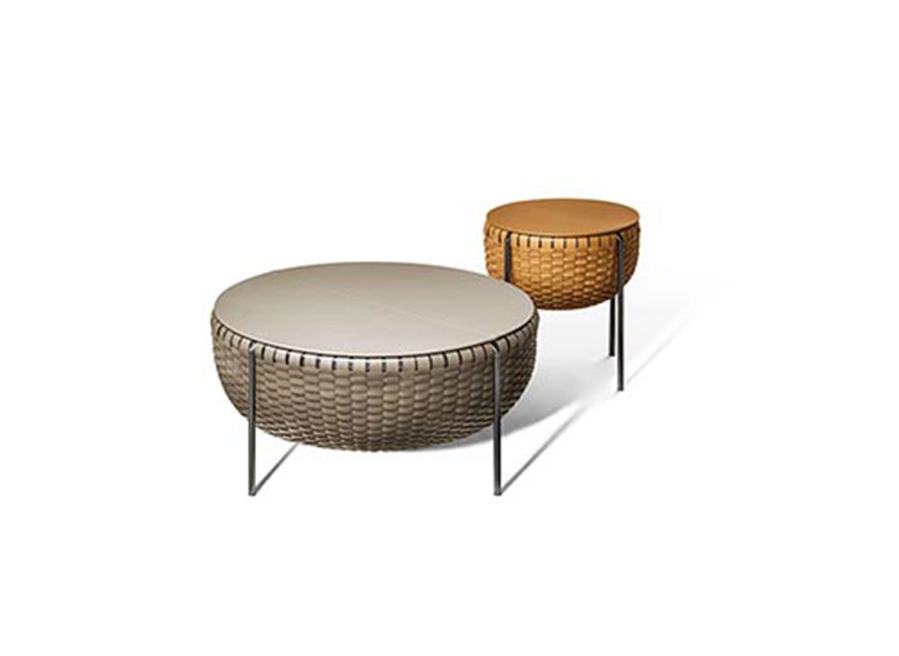 「Cestlavie」は収納用「バスケット」ですが、ミニテーブルでもあります。Pelle Frau®で上張りされた上部には円盤状の折り畳み式のふたが付いており、内部へのアクセスを可能にすると同時に、カウンタートップとしても便利です。どのディテールも高度な高品質に輝いています。小規模な高級皮革工房のテクニックを駆使して編まれたなめし革の束は、縁の部分にいたるまで同系色で染色されています。なめし革の内側の表面にも、蝋引き保護処理が施されています。スチール構造にはガルバニック処理とガンメタルカラーまたは黒光沢仕上げが施されています。