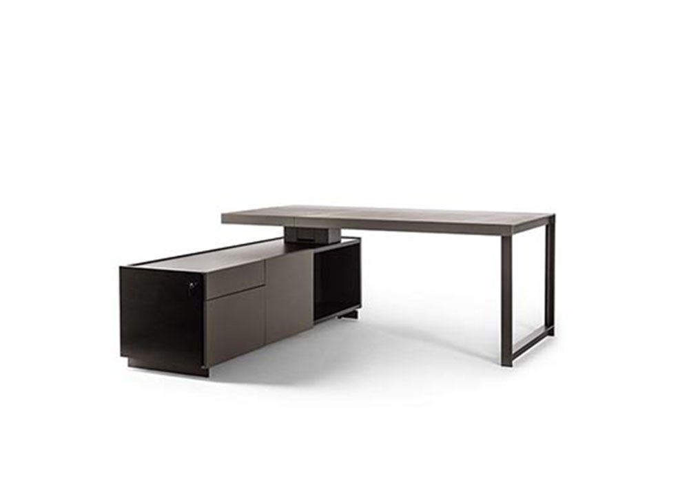 プレジデントデスクの天板はPelleFrau®レザーで装飾され、リード色またはタバコ色のオーク材で装飾されています。