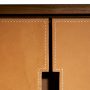 外側のサドルレザーと木材の暖色系のダークカラー、引き出し内側に使用されている天然ポプラの非常に明るい色調のコントラストも鮮烈な印象を与えます。