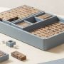 上質なPelle Frau®レザーで覆われた木製の専用ボックスには、ウォールナット材の麻雀碑や点棒、プレキシガラスのサイコロが収納されています。細部にこだわりを感じる繊細なディテールはポルトローナ・フラウならでは。ラグジュアリーな空気感を纏った遊び心が光るアイテムです。