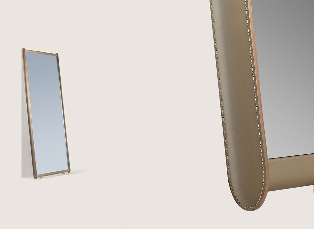 「Dorian」は大きな鏡面に、暖かいサドルレザーのフレームを組み合わせたシンプルな長方形のミラーです。