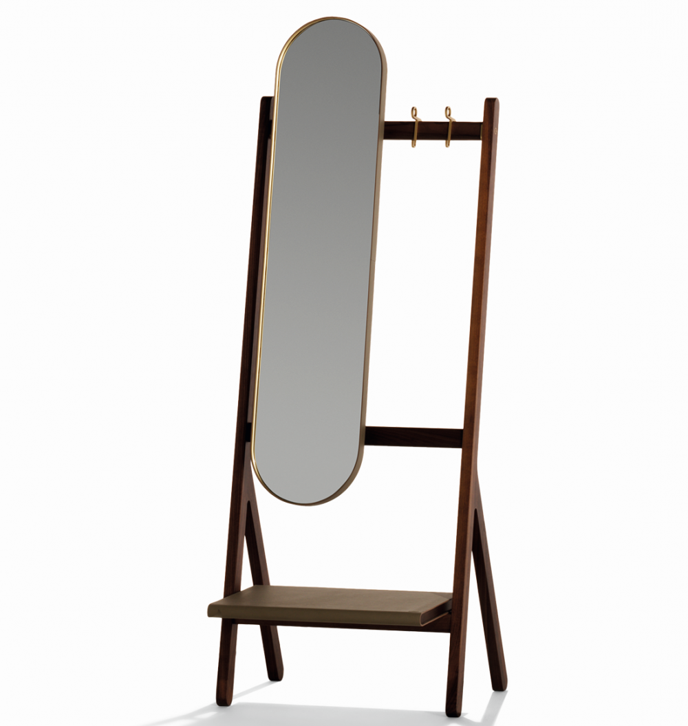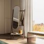 「Ren」スタンドミラーは、楕円形の鏡、低い棚、および洋服を掛けるための2つのフックで構成されています。洗練されたデザインの中に実用性を兼ね備えたミラーです。寝室や玄関ホールなど幅広いシーンでご利用いただけます。