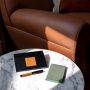 ペンはブラックカラーのエコレザー製ペンケースに入っています。さらにケースにはカード6枚と封筒6枚で構成されたPineiderのレターキットが入っています。