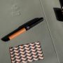 水性インクボールペンには旋盤加工した光沢ブラックカラーのレジン製ケースがついており、ツイスト・マグネティック・ロックによってペンの開閉ができるようになっています。また、持ち手にはPelle Frau®レザーが使用されており2色からお選びいただけます。ペン先は0.7ミリのセラミックボール付きのステンレススチール製で、ジェルベースのブラックカラー・インクを使用。