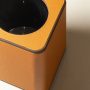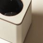 ゴミ箱は、角が丸みを帯びたエレガントな平行六面体が特徴で、木製で作られ、貴重なステッチが施されたPelle Frau®レザーで完全張りされています。同様に木製でPelle Frau®レザー張りの蓋も付いています。