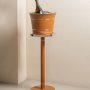 シャンパンバケットスタンドは、Pelle Frau®レザー張りのスチール製シリンダーで、バケツを置くための円形のベースが付いています。バケツと同様に、ベースのカラーバリエーションも豊富で、別売りとなっています。