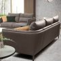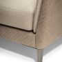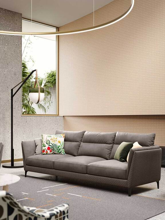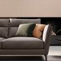 Bretagne Gran Comfort ソファには、2 人掛け、2人掛けラージ、3人掛けがあります。張地はすべてPelle Frau® レザー、または Pelle Frau® レザーとファブリックのコンビネーションで、構造部分とベースはPelle Frau®モチーフニットレザーで、より立体的な触覚と視覚効果を加えています。脚はアルミ製です。