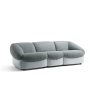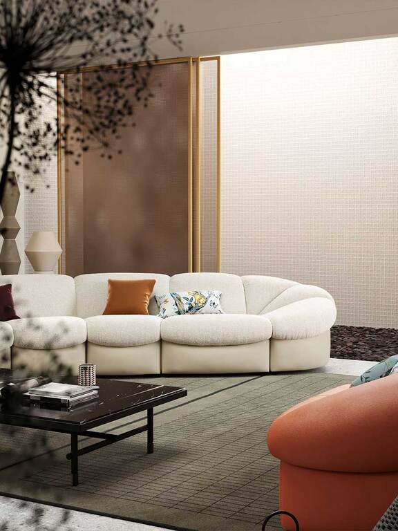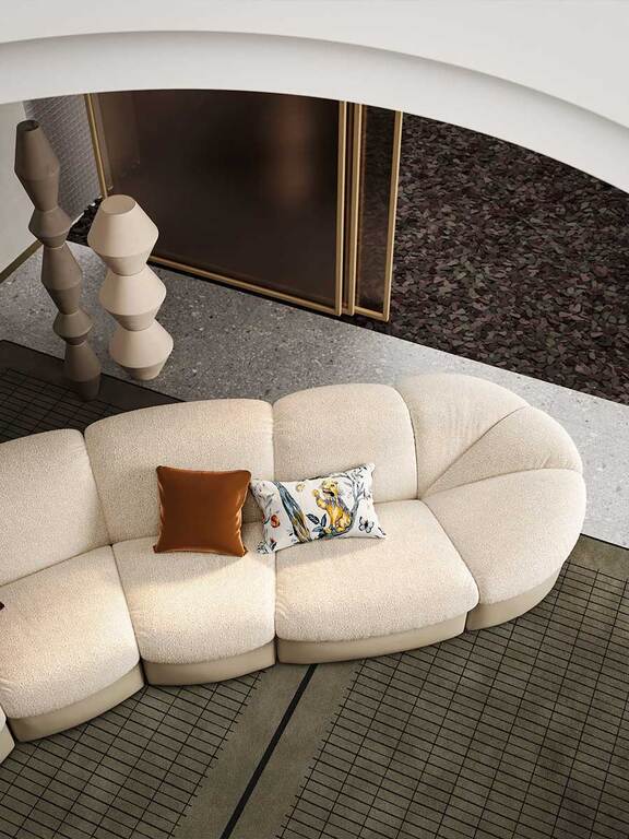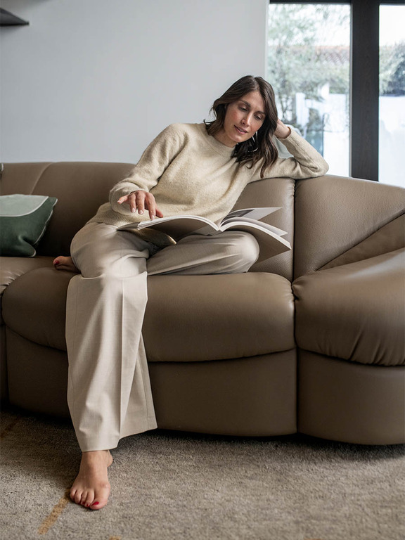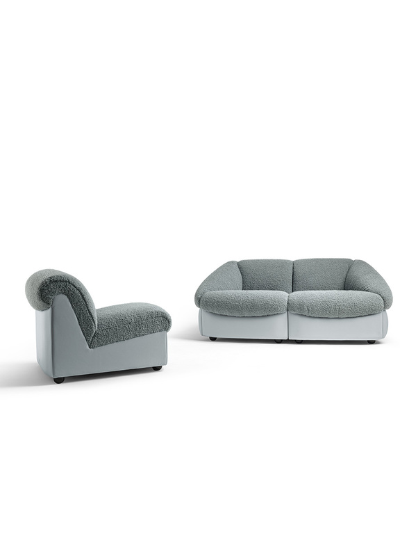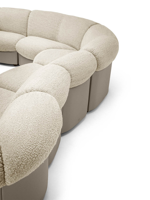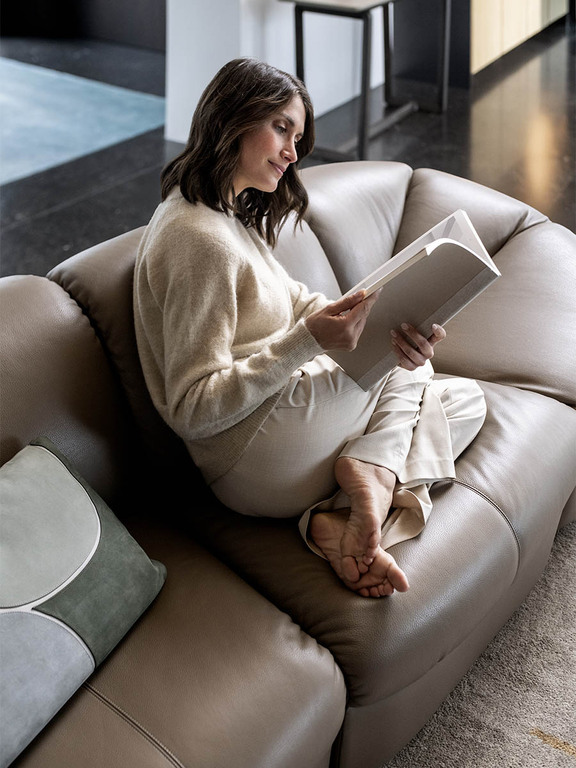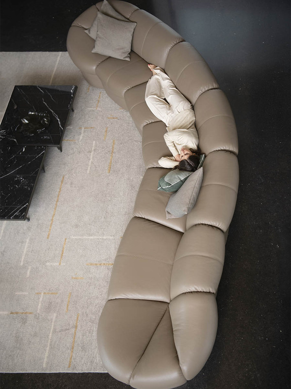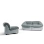 Parkaシートコレクションには、さまざまなモジュール式パーツが用意されており、60度の凹型チェアやアームレストのない凹型または凸型チェア、さらに端に配置できる凹型または凸型のチェアが揃っており、後者はマキシタイプや右用または左用からお選びいただけます。Parkaソファの張り地は、その全体にカタログに掲載されている各種のPelle Frau®を張り込みことができます。さらに、レザーとファブリックを組み合わせて張り地にすることも可能です。レザーとファブリックを組み合わせる場合は、レザーの張り地を外装に、ファブリックをシート、背もたれ、アームレストに使用されます。ステッチは同系色になっています。
