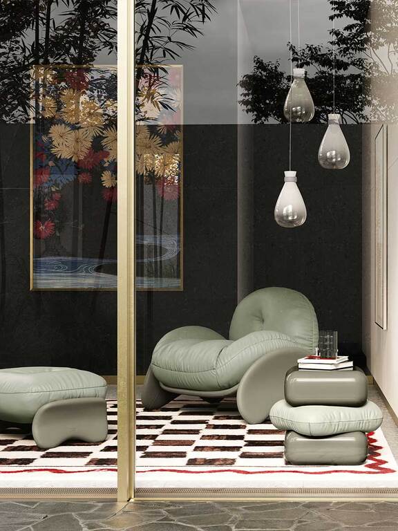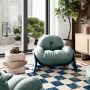 アームチェアSquash のデザイナーがおすすめするカラーコンビネーションは、クリーム、セージ、ブルー、ブラウンです。