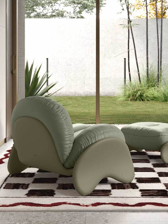 ゆったりとした心地よいフォルムのアームチェア「Squash」は、Polimex®製の固い芯をフレームに、取り外し可能なFrau®レザーやレザーとファブリックの組み合わせたカバーで覆われた大きくて柔らかいクッションがコーディネートされています。本体と脚には軽くパッドが入っており、心地いい感触を楽しめます。ベースの脚は革張りです。シートのクッションとアームレストは、ポリエステルと密度の異なるウレタン製で、より快適な座り心地を提供します。チェアのベースはカバノキ合板製です。