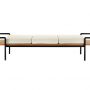 ベンチ「T904」の構造体はブラックカラー塗装されたスチールチューブを使って精巧にデザインされています。非常にシンプルな座面はチークカラーのトネリコ材で化粧張りを施したポプラ積層板の台で構成されており、木製天板に3個のクッションを自由に配置してアレンジをお楽しみ頂けます。クッション材は発泡ポリウレタンとダクロンが使用されています。ソファーのカバー材はPelle Frau®または取り外し可能なファブリックから選択いただけます。