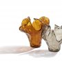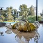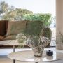 Water Illusionシリーズは、イタリア国内で完全に手作業で制作されています。100%リサイクルガラスを使用し、クリスタルガラスと「コティッソ」と呼ばれるリサイクルガラスを1500C˚に達するるつぼ内で溶かす特殊な技術「Vetro Colato」によって実現されています。ガラスは透明で分厚く、表面は滑らかですが、内部のさざ波が水のような「動きのある」質感を与えています。鉢と花器は2サイズ、2色(ペーストに直接着色)を揃えており、水平面に詩的で虹色に変化するカラーニュアンスを与えます。
