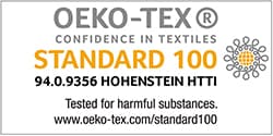 350を超える有害化学物質が対象となる厳しい分析試験にクリアした製品だけに与えられる、世界最高水準の安全な繊維製品の証です。