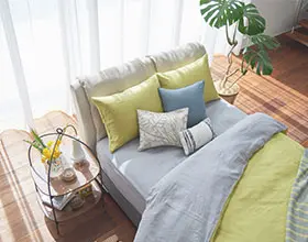 ぐっすり眠るためには寝具だけでなく寝室の環境も大切です。カラーコーディネートやリラックスできる香りのご提案など、さまざまな視点からご提案します。