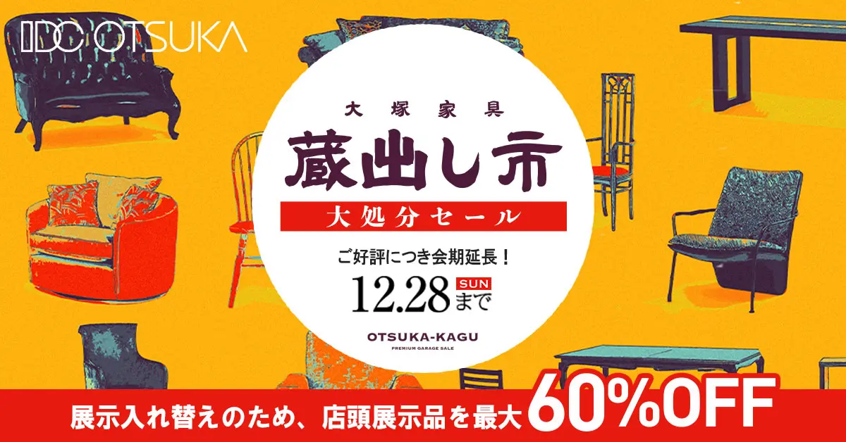 展示入れ替えに伴い、店頭展示品を最大60%OFFの特別価格でご提供!ソファやダイニングなど大塚家具の人気商品を多数ご用意しております。この機会にぜひ、お立ち寄りください。