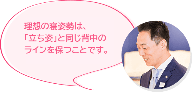 固い、柔らかいではなく正しい寝姿勢をつくることが快眠につながることをご説明。