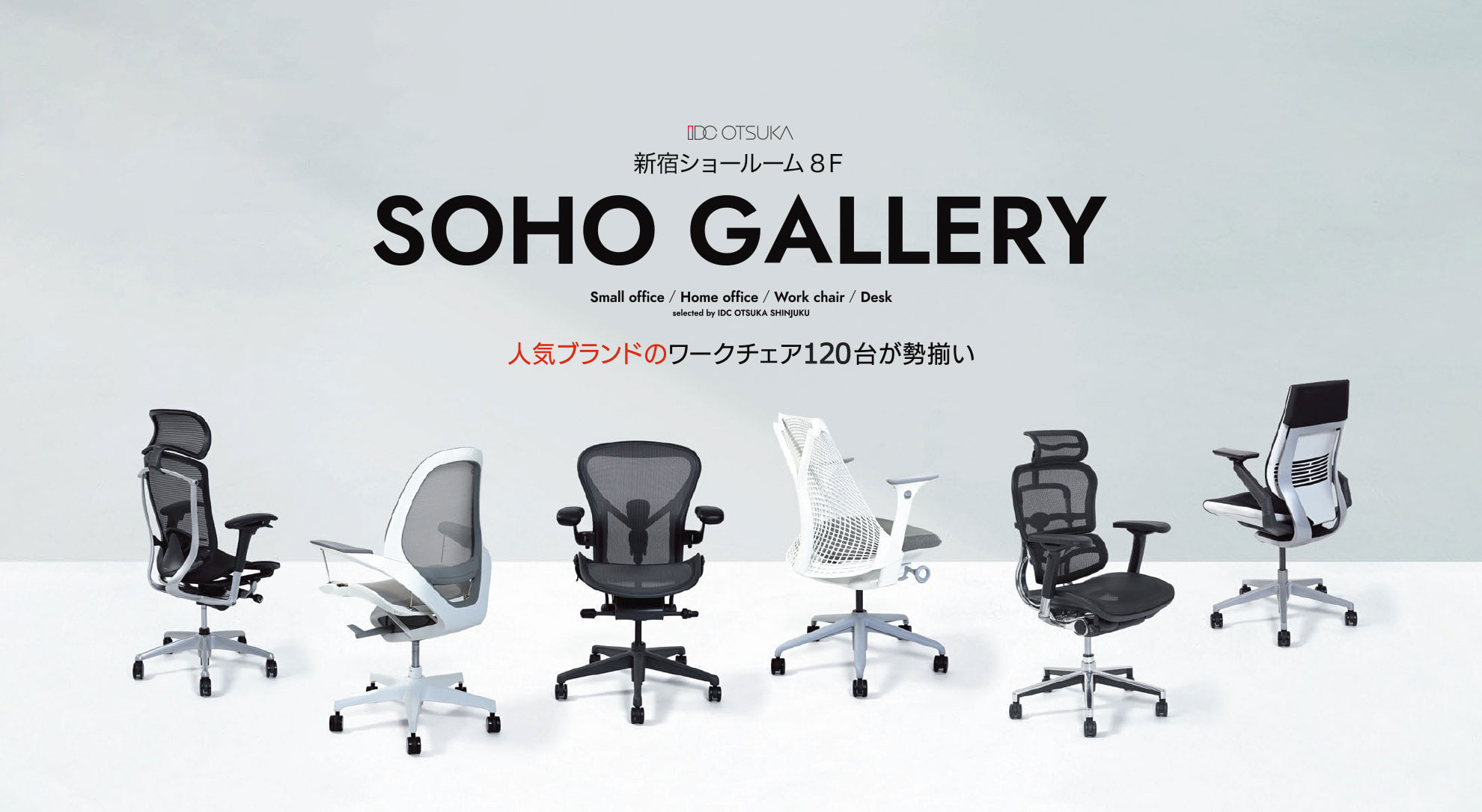 ハーマンミラー、オカムラ、エルゴヒューマンなどのワークチェアをいちどにお試しいただけます。