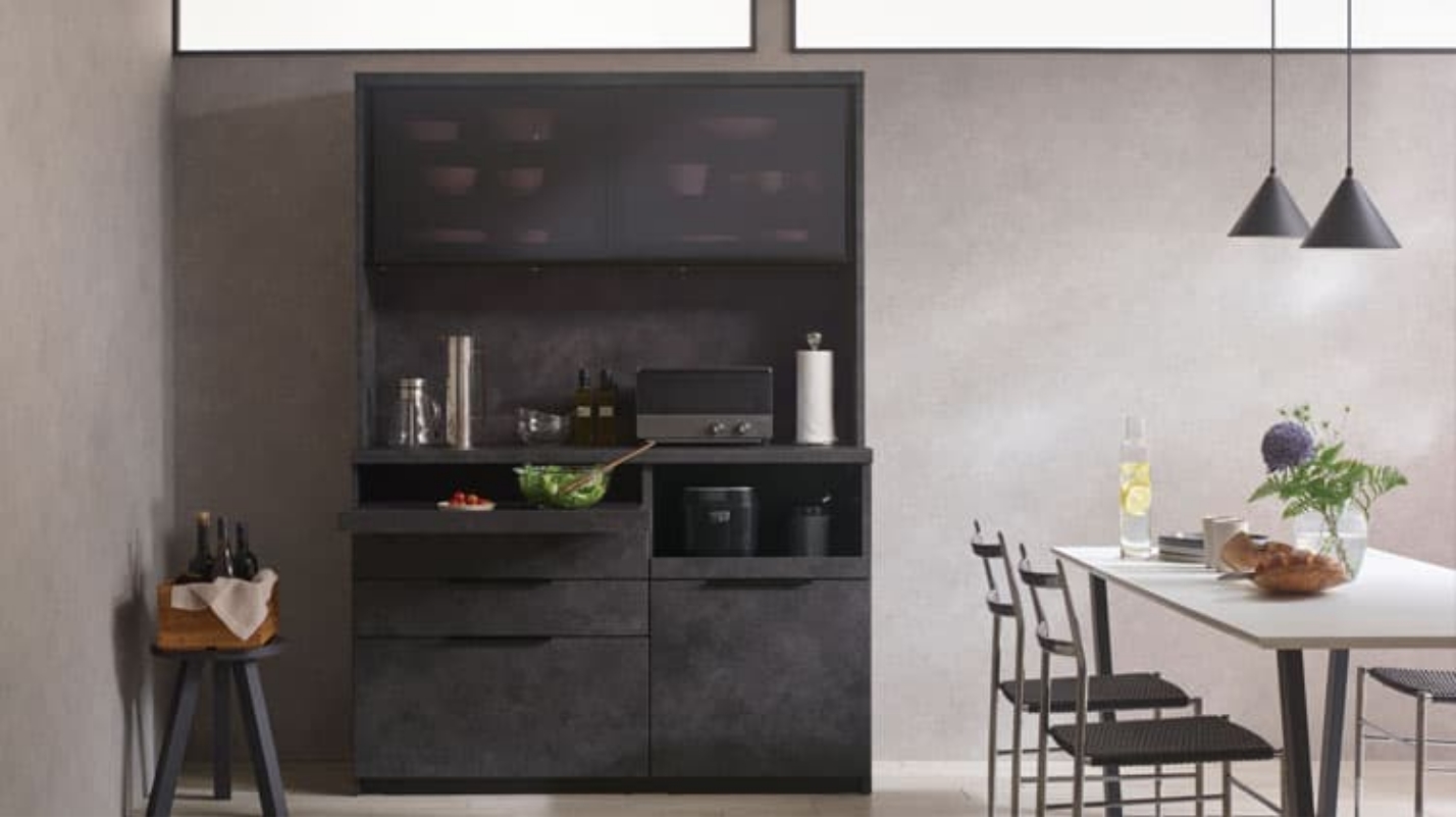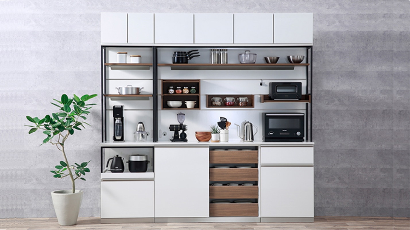 キッチンの食器棚をはじめ、テレビボードや壁面収納などのリビング家具まで、機能的でシンプルなデザインの国産家具メーカー「パモウナ」。