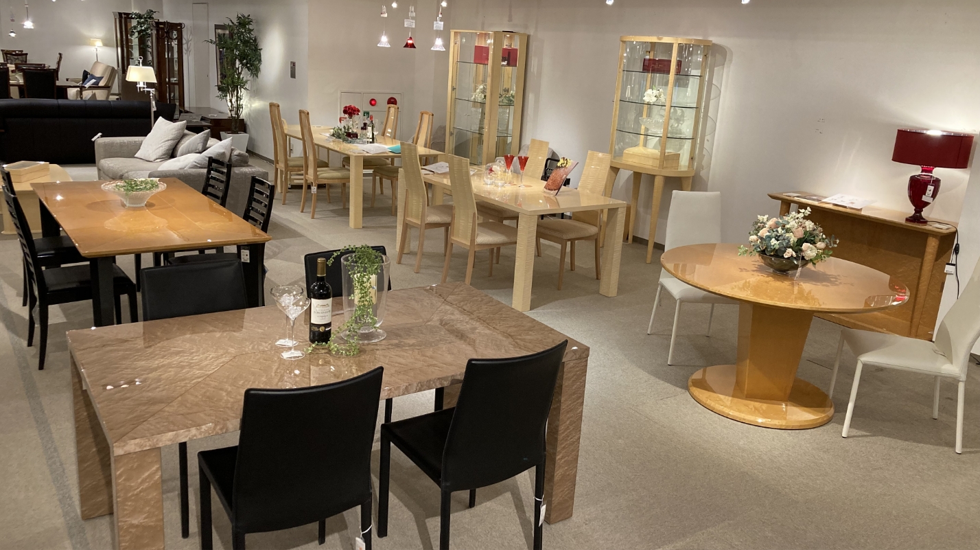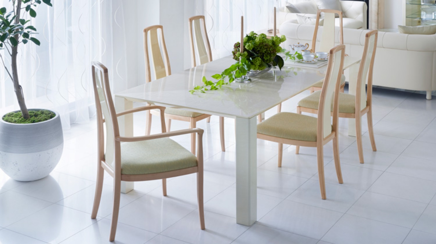 国内有数の家具産地として栄えた四国・徳島で1918年に創業したFUJIKAWA。創業当時から継承され続けている、家具職人の経験と誇りを宿した強さと美しさ、そして味わい深さがFUJIKAWA家具の真骨頂です。鏡面塗装による輝きは「Wet shine」と呼ばれ、高級家具の代名詞となっています。